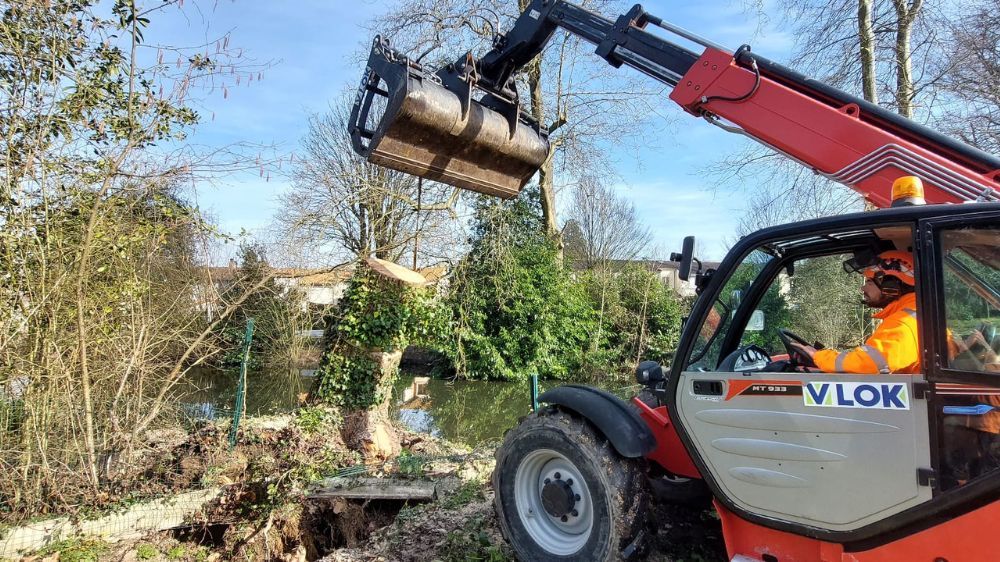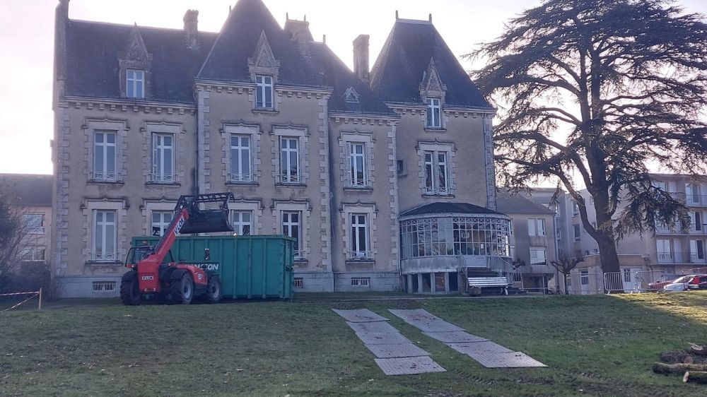 L’objectif de l’intervention, confiée à l’agence de Poitiers, était de débiter l’arbre afin de sécuriser les lieux pour les résidents et le personnel, tout en préservant les aménagements paysagers du site.