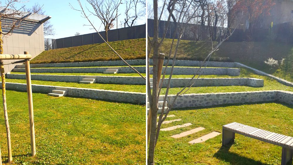 L'agence Serpe Valence entretient les espaces verts de la piscine Camille Muffat à Portes-Lès-Valence (26).