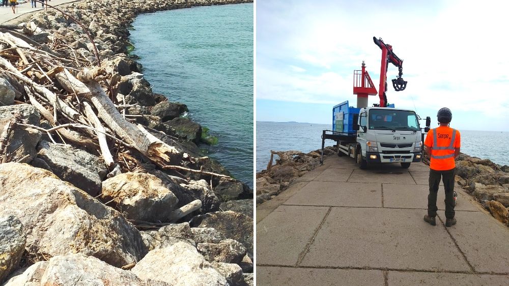La Capitainerie de Valras-Plage a pris contact avec les équipes de l’agence Serpe de Montpellier pour retirer les embâcles et mettre en sécurité la digue avant la saison touristique à Valras-Plage dans l’Hérault en région Occitanie (34).