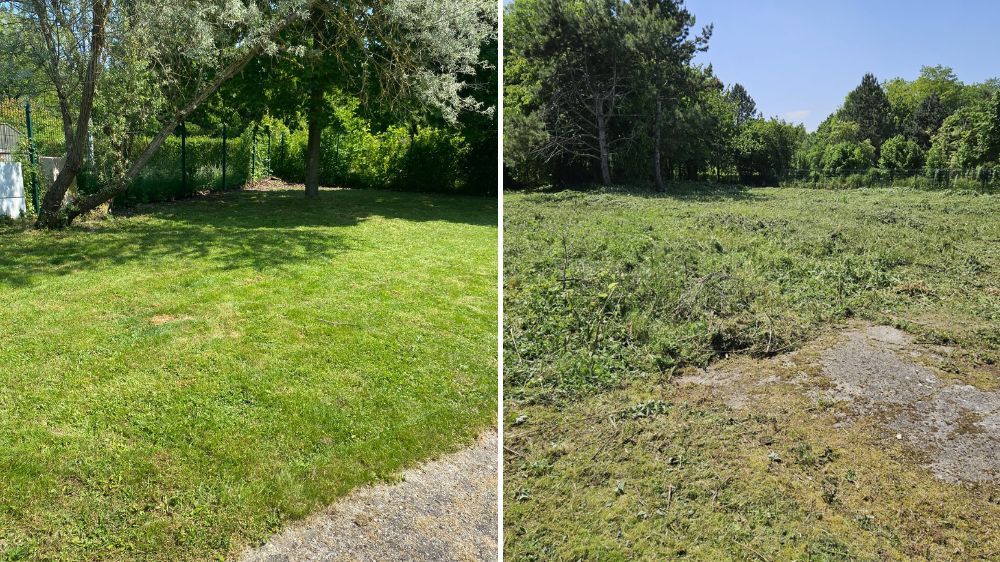 Fauchage et débroussaillage d'un fossé pour une meilleure circulation de l'eau lors des pluies.