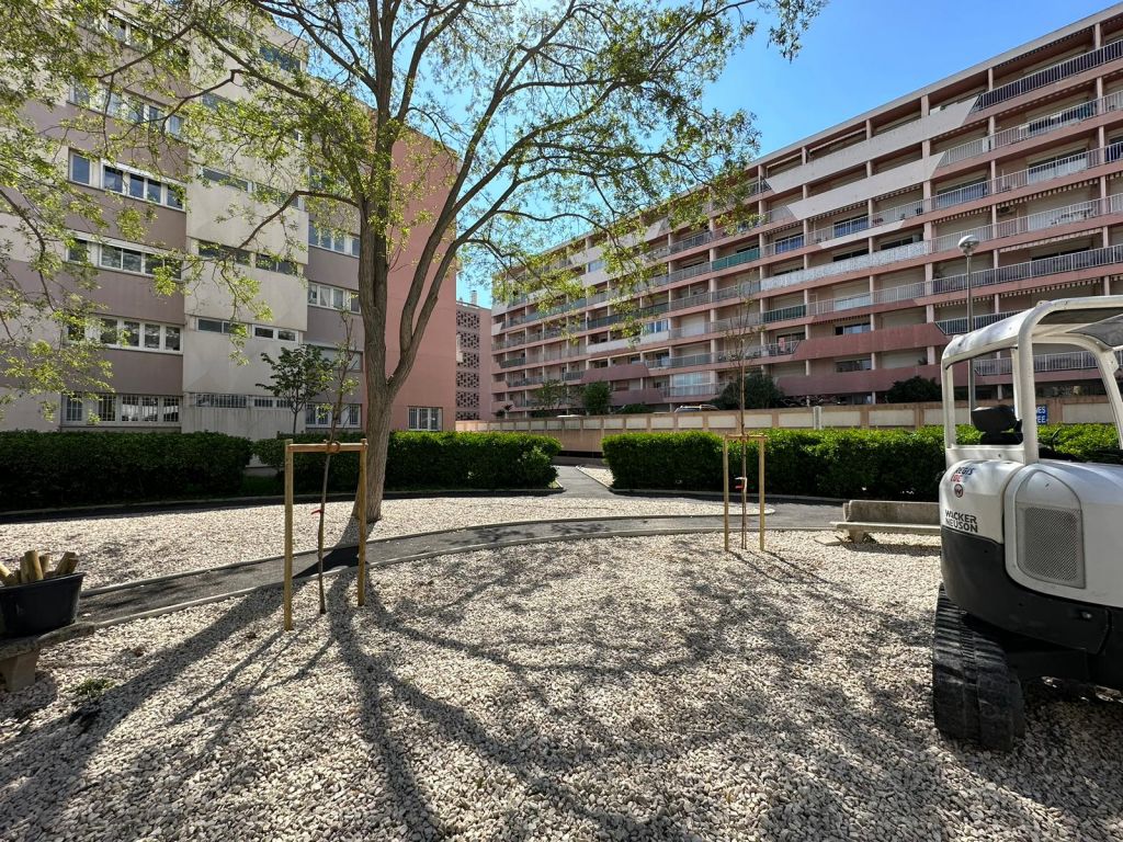 Les acacias déjà présents sur la résidence, les ouvriers paysagistes en création ont souhaité repeupler ce square en replantant des arbres disparus de par leur grand âge.